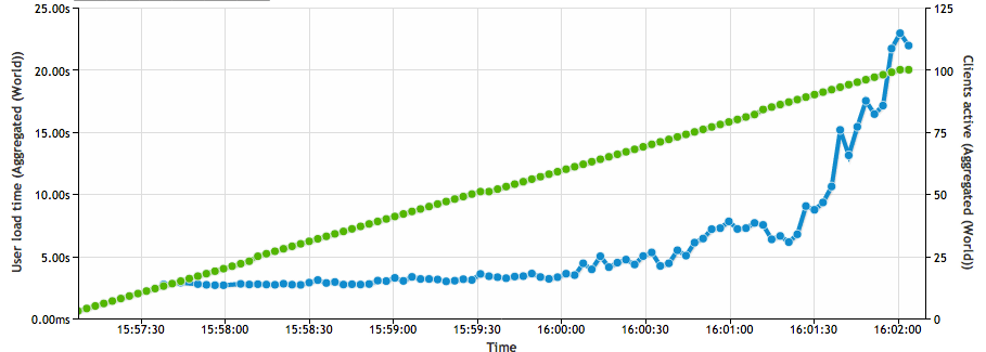 During a load test the number of simultaneous connections is growing over time. The goal is to evaluate the application's behavior in accordance with the growth of traffic (requests) so that we can identify both application's capacity limit and bottleneck (coding, hardware, database ...)