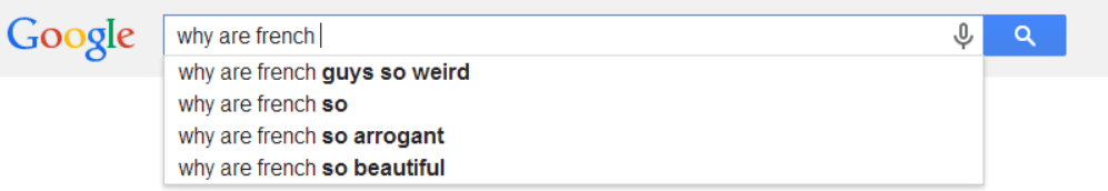 During a typical lunch talk, a colleague said that we could easily list the most popular stereotypes about a nation just by asking Google: