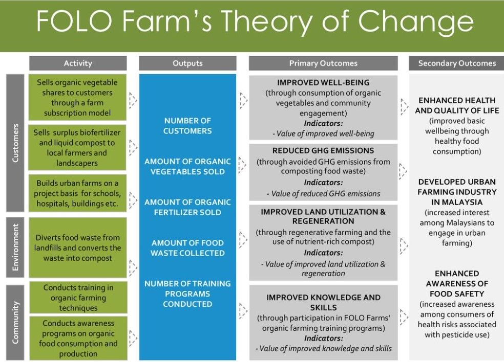 Voir cet exemple de théorie du Changement pour un programme de fermes locales (source)