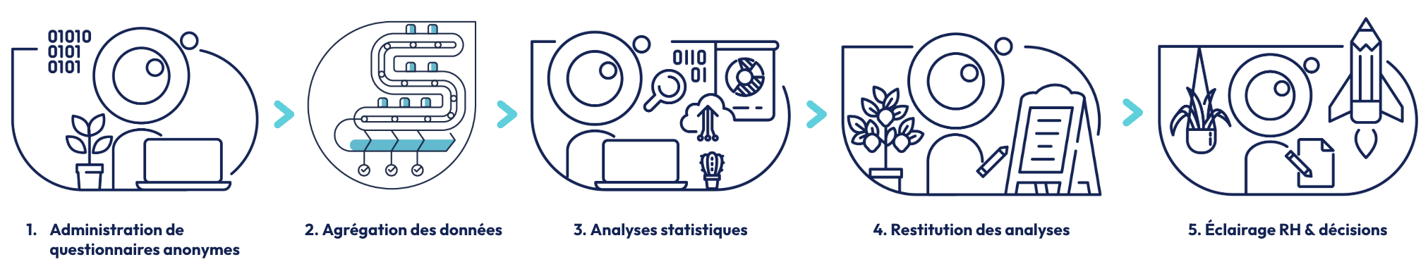 Chaque étape, conception du questionnaire, anonymisation, traitement des données, analyses statistiques, restitution, influence directement ce que les résultats permettent d’interpréter.
