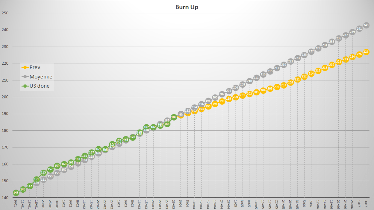 Et notre burn-up chart aura ainsi pour unité l’US Done.