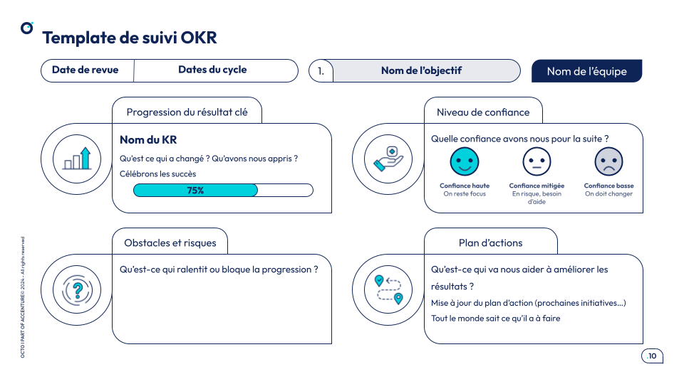 Si vous avez envie de retrouver toutes ces astuces et d’aller plus loin dans les OKR, je vous conseille de télécharger le livre blanc Culture OKR - Donner de l'autonomie et de l'alignement grâce aux OKR https://publication.octo.com/culture-okr