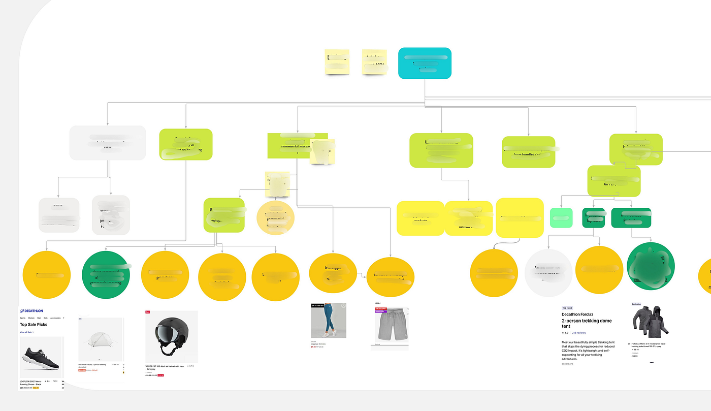 Dès la récolte des premiers feedbacks utilisateurs, j’ai suivi la méthode de Teresa Torres qui consiste à centraliser les opportunités dans un support visuel appelé “Opportunity Solution Tree” (arbre d’opportunités et de solutions)