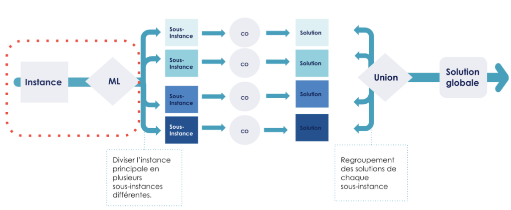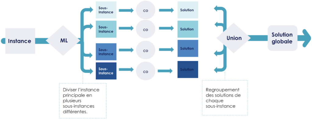 Ainsi, le but de mes recherches est de concevoir un algorithme innovant intégrant des techniques issues des deux domaines, optimisation combinatoire et Machine Learning, pour résoudre un problème à grande échelle.