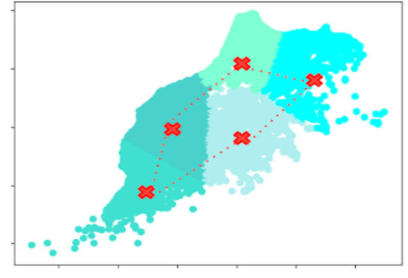 _Figure 4 : Visualisation de la résolution du problème du TSP sur les centroïdes de 5 clusters.