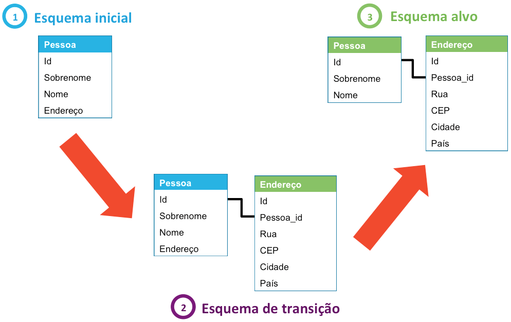 Na realidade, essa migração será feita em dois tempos, usando temporariamente um esquema de transição para assegurar o rollback se um problema surgir: