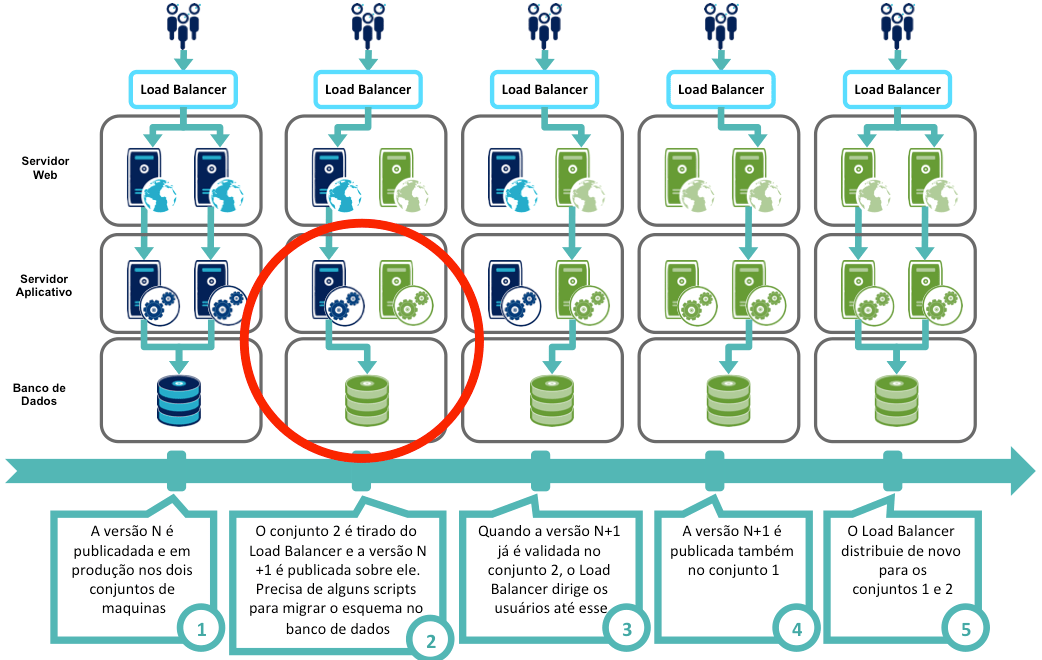 O objetivo é combinar o mecanismo de distribuição de carga (Load Balancing) com o processo de deploy: