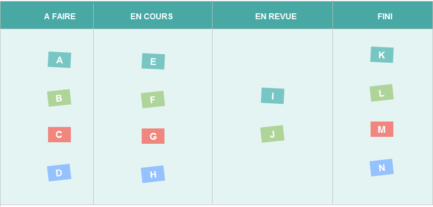 Ce board visuel est constitué de trois colonnes, dans lesquelles chaque tâche va circuler :
