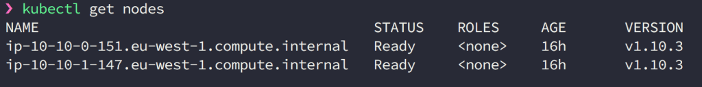 Nous pouvons maintenant vérifier l’état du cluster avec la commande kubectl get nodes.