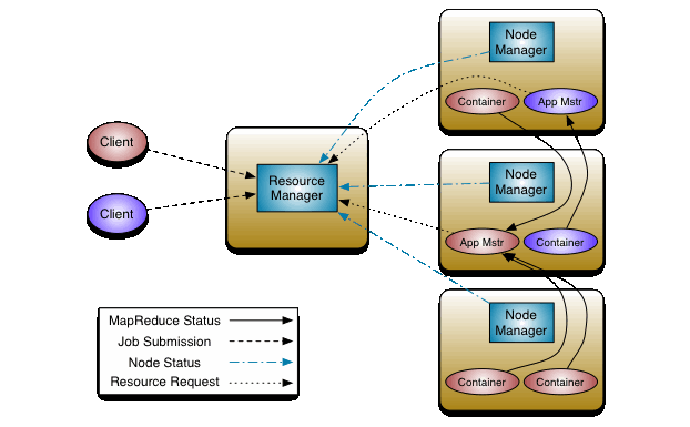 Cette remise à plat des rôles à permis aussi de découpler Hadoop de Map Reduce et, ce faisant, de permettre à des frameworks alternatifs d'être portés directement sur Hadoop et HDFS et non au dessus de Map Reduce.