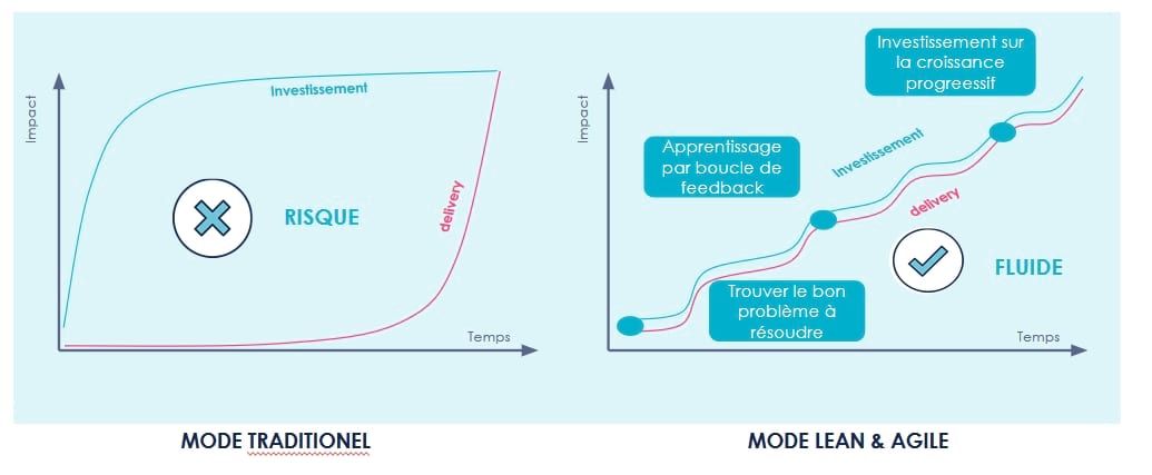 Trop de projets innovants sont lancés avec un gros ticket d'investissement engagé dès le départ et une première livraison en production au bout de 6 mois, 1 an. Dans cette période, le risque engagé est extrêmement élevé en attendant la preuve incertaine du ROI.