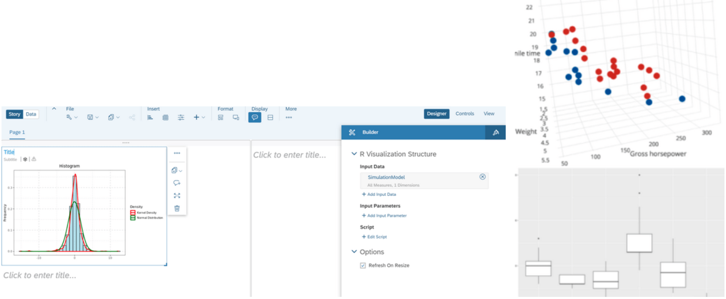 Pour les utilisateurs plus aguerris en data-science, il est possible de rajouter dans les applications SAC des visualisations R nativement, soit via son propre serveur R, soit via un serveur pré-configuré disponible sur SAC. Le code R est interprété par le serveur R et SAC s’occupe de la partie graphique. On peut par exemple utiliser des librairies R telle que ggplot2.