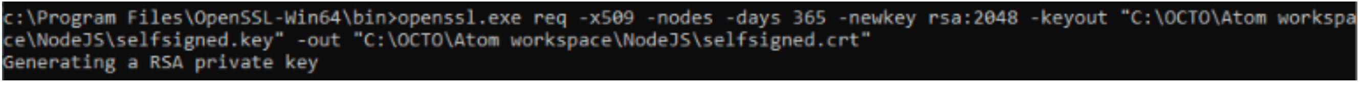 Pour sécuriser le serveur Node JS, il pourra être générer un certificat auto-signé via la commande suivante: