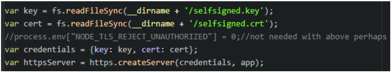Une fois les certificats créés, ils sont utilisés pour la création de notre serveur HTTPS: