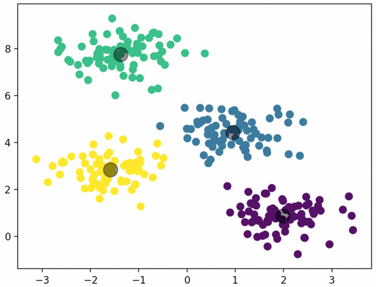 exemple de regroupement K-means avec K = 4Regroupement K-means avec K = 4