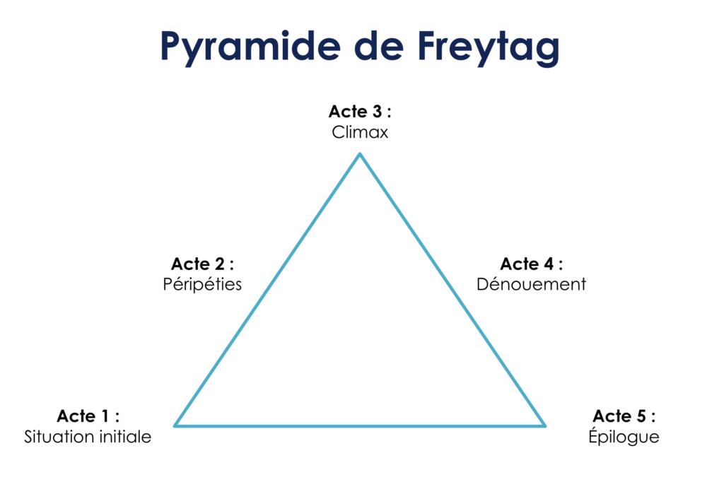 Au-delà de la survie, les récits nous accompagnent sur le chemin de la connaissance, en facilitant la compréhension, la mémorisation et la restitution. Les récits structurent notre pensée, notamment grâce à la pyramide de Freytag, structure dramatique classique qui remonte à Aristote. Shakespeare, entre autres, utilisait cette structure, arrangeant ses pièces en cinq actes avec une exposition, une action ascendante, un point culminant (le climax), une action descendante et un dénouement.