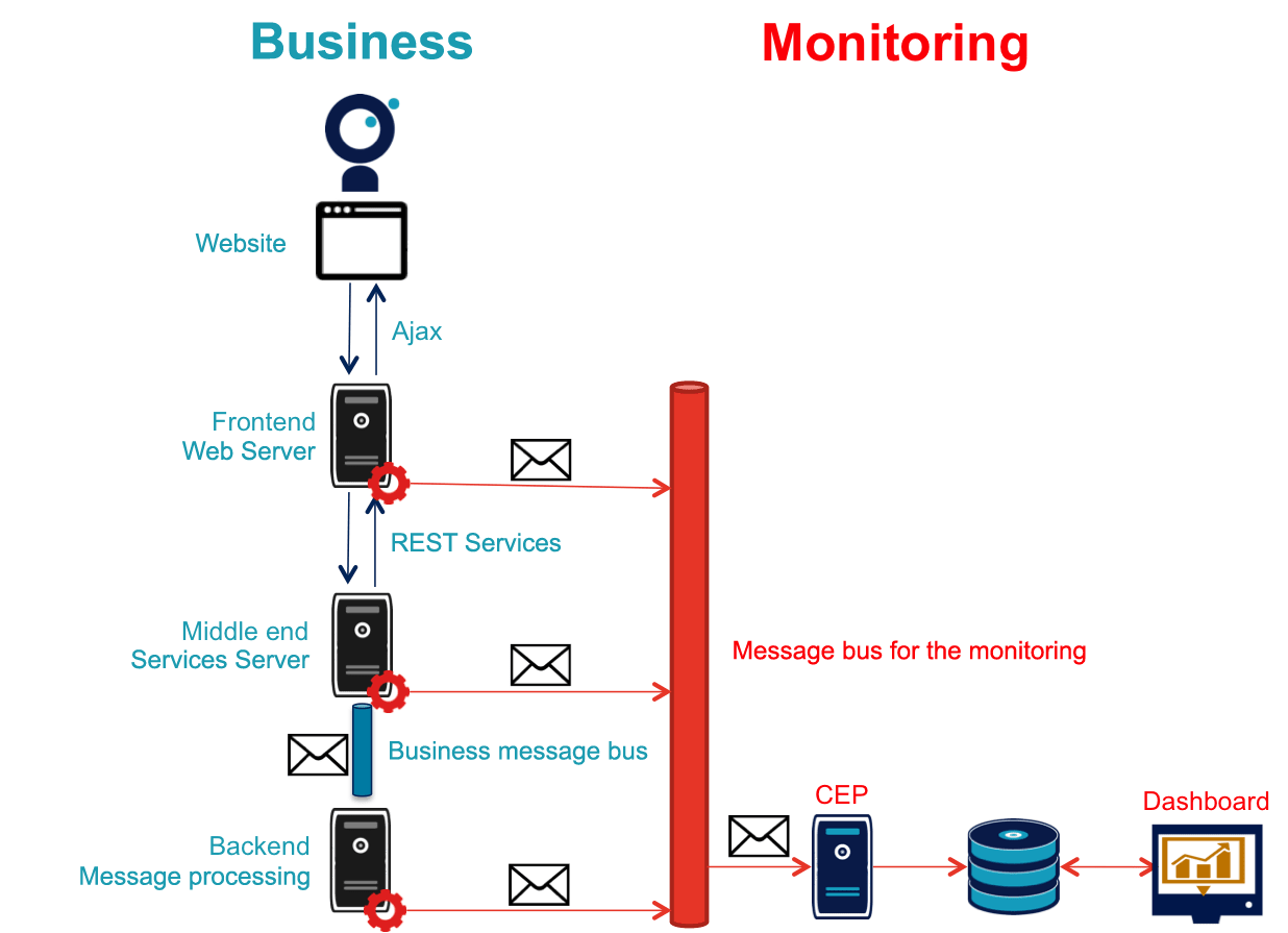- A CEP server for processing these messages to create alerts and produce KPIs