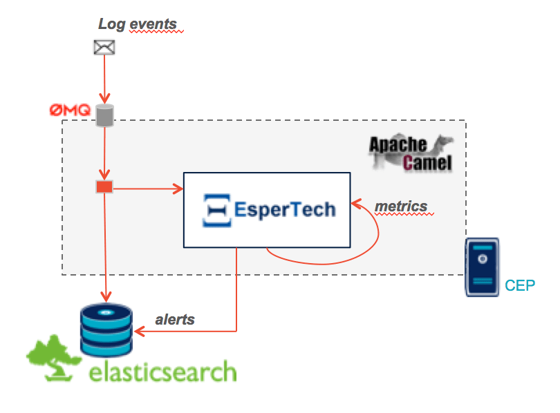 - The memory state and alert notifications are implemented using the Esper framework. Camel provides the connector to bind to it. The rules are written with the internal DSL named EPL (Event Processing Language) in the Camel configuration file.
