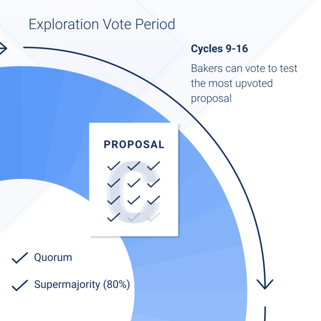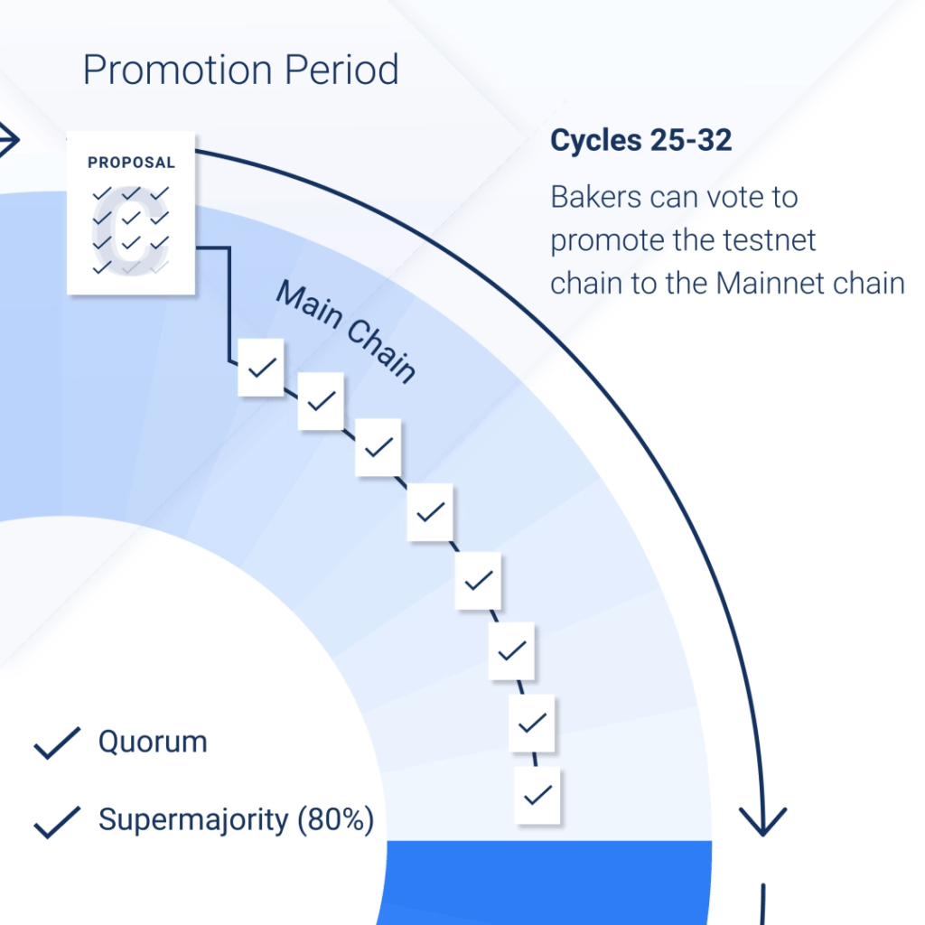 Tezos utilise les concepts de quorum et de super-majority vote, qui correspond à un vote à la majorité qualifiée, pour décider de l’envoi en période de test ou non.