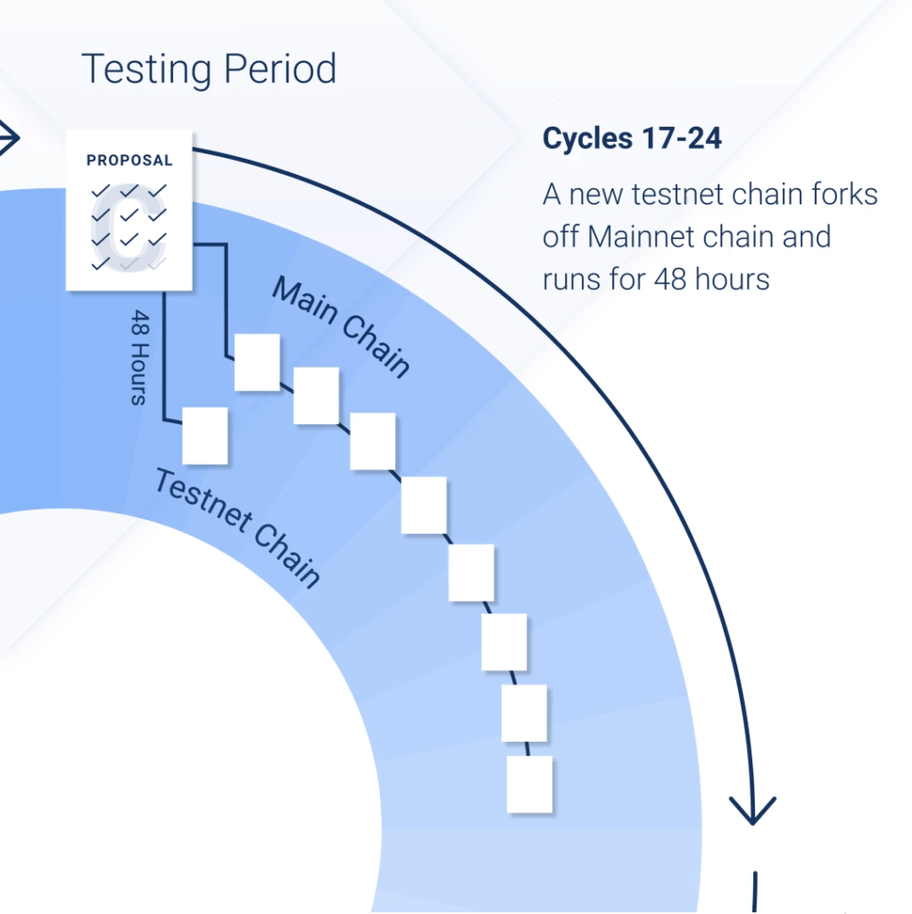 Une fois le développement terminé, ils voudront soumettre leur proposal puis différentes phases de votes et de tests vont avoir lieu.