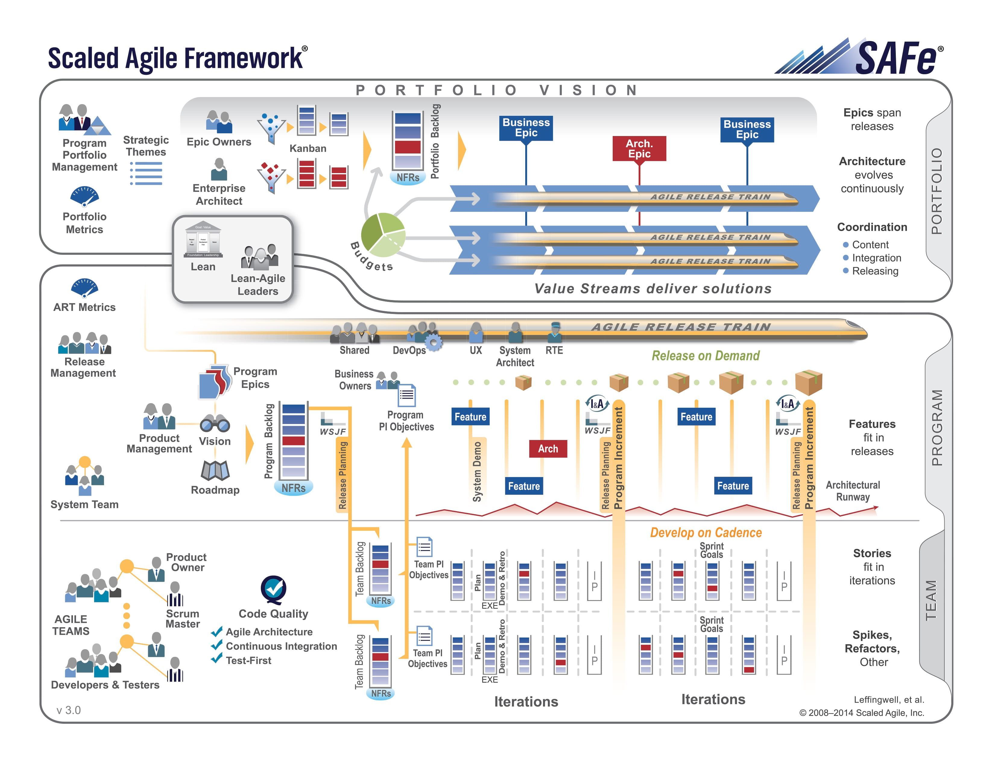 Je vous propose dans cet article de parcourir les 3 couches de la Big Picture proposée par Dean Leffingwell tout en vous partageant mon avis.