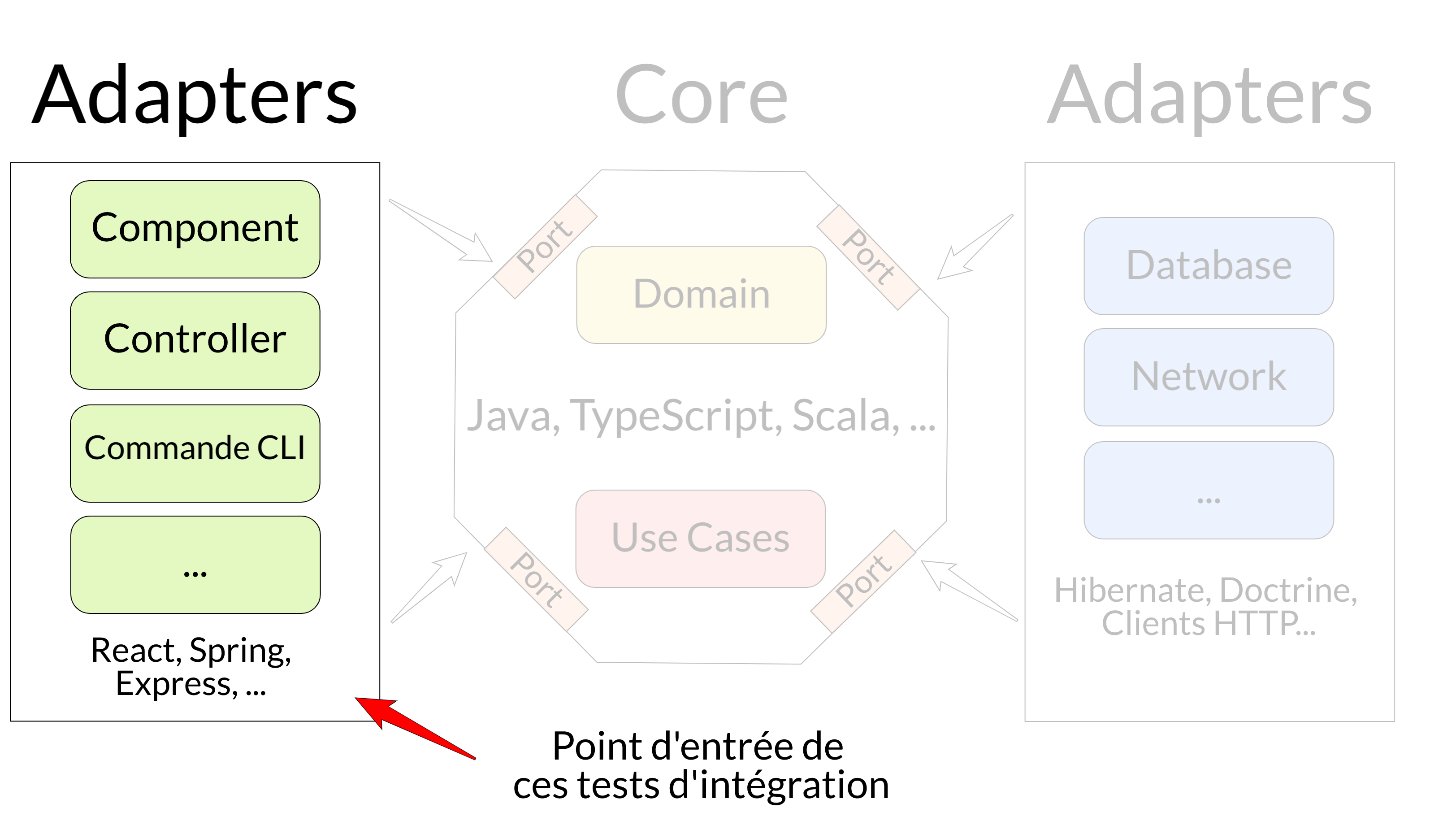 Ici, nous allons nous focaliser sur les tests d'intégration des adaptateurs de gauche ou encore adaptateurs primaires, il existe d'autres synonymes. Pour connaître leurs particularités, je vous conseille ces articles :