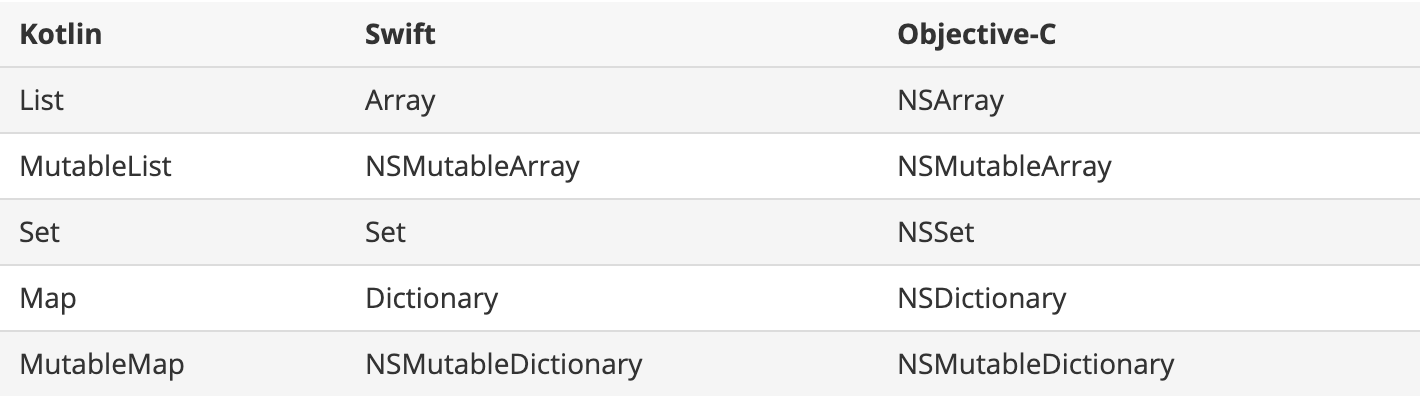 - En passant par Kotlin, le framework génère une bibliothèque en Swift/Objective C en ce qui concerne iOS et la conversion peut parfois nous jouer des tours. un Long en Kotlin se traduit en Int64 en Objective C, autre exemples :