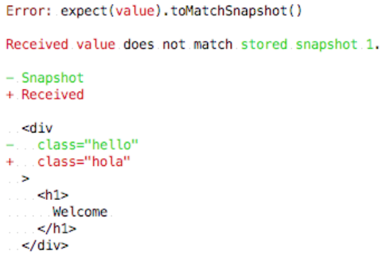 Snapshot is a tool provided by Jest. We use it to detect UI changes of static elements. At first, it renders an HTML structure with the actual Vue template. Then, each time the test is executed, it will render the Vue template again. Finally, it will compare the two last rendered HTMLs, and expect them to be identical. This tool is used for regression testing, not in TDD.
