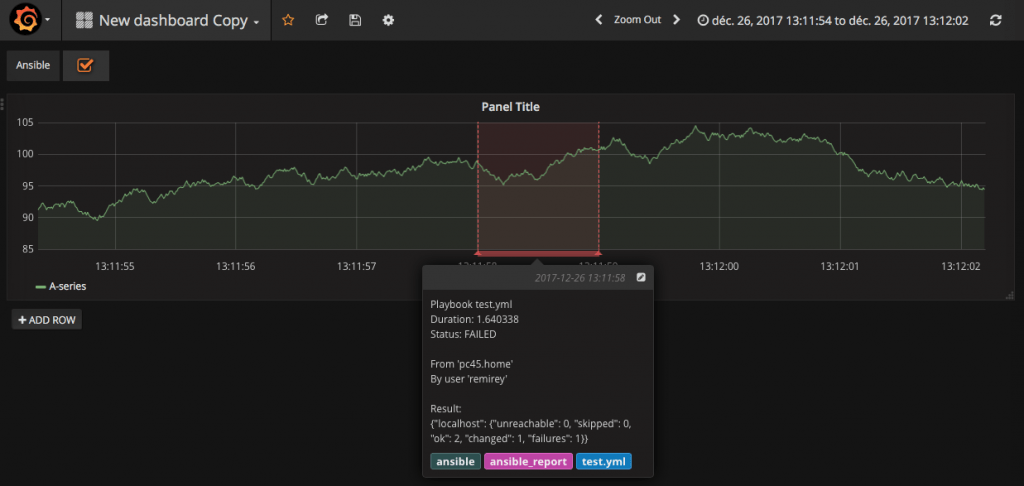 As all our deployments are performed through Ansible, the idea is to have Ansible create an annotation in Grafana everytime a playbook is executed.