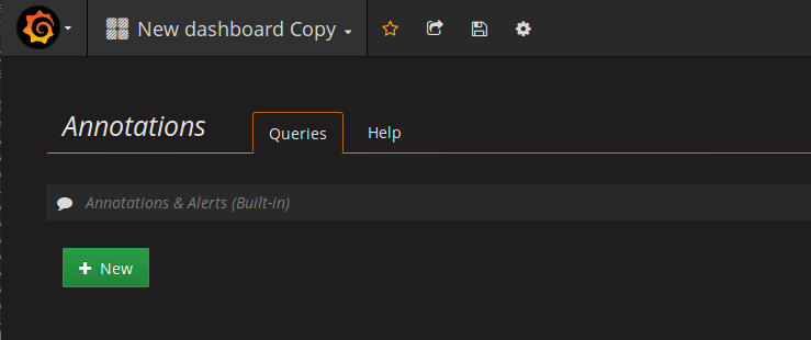 Since the built-in query will only display the annotations explicitly scoped to the dashboard we need to add a new query that will be able to display our global annotations.
