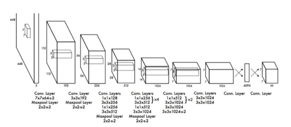 → L'entrée est une image de 448 x 448 et la sortie est la prédiction de classe de l'objet enfermé dans la boîte englobante.