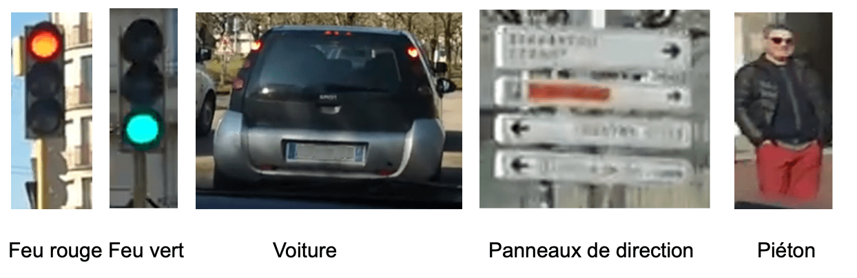 Il est temps maintenant de mettre en pratique les notions abordées dans les parties précédentes à travers un cas particulier, à savoir le cas des voitures autonomes. En effet, pour qu’une voiture puisse circuler sans conducteur, plusieurs points doivent être mis en place tels que l’accélération, le freinage, la direction de la voiture, etc. Dans notre cas, nous allons nous focaliser uniquement sur la détection de certains objets sur la route à savoir :